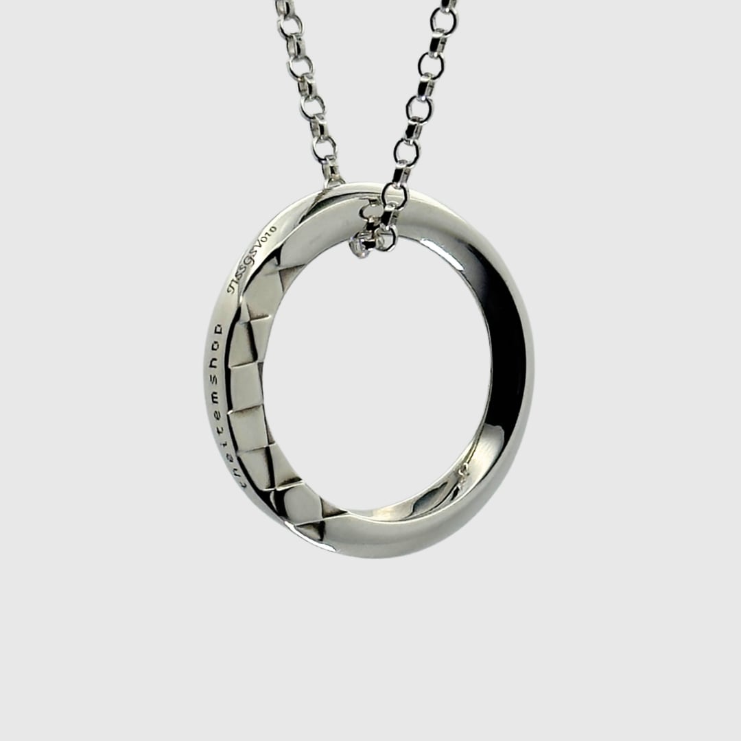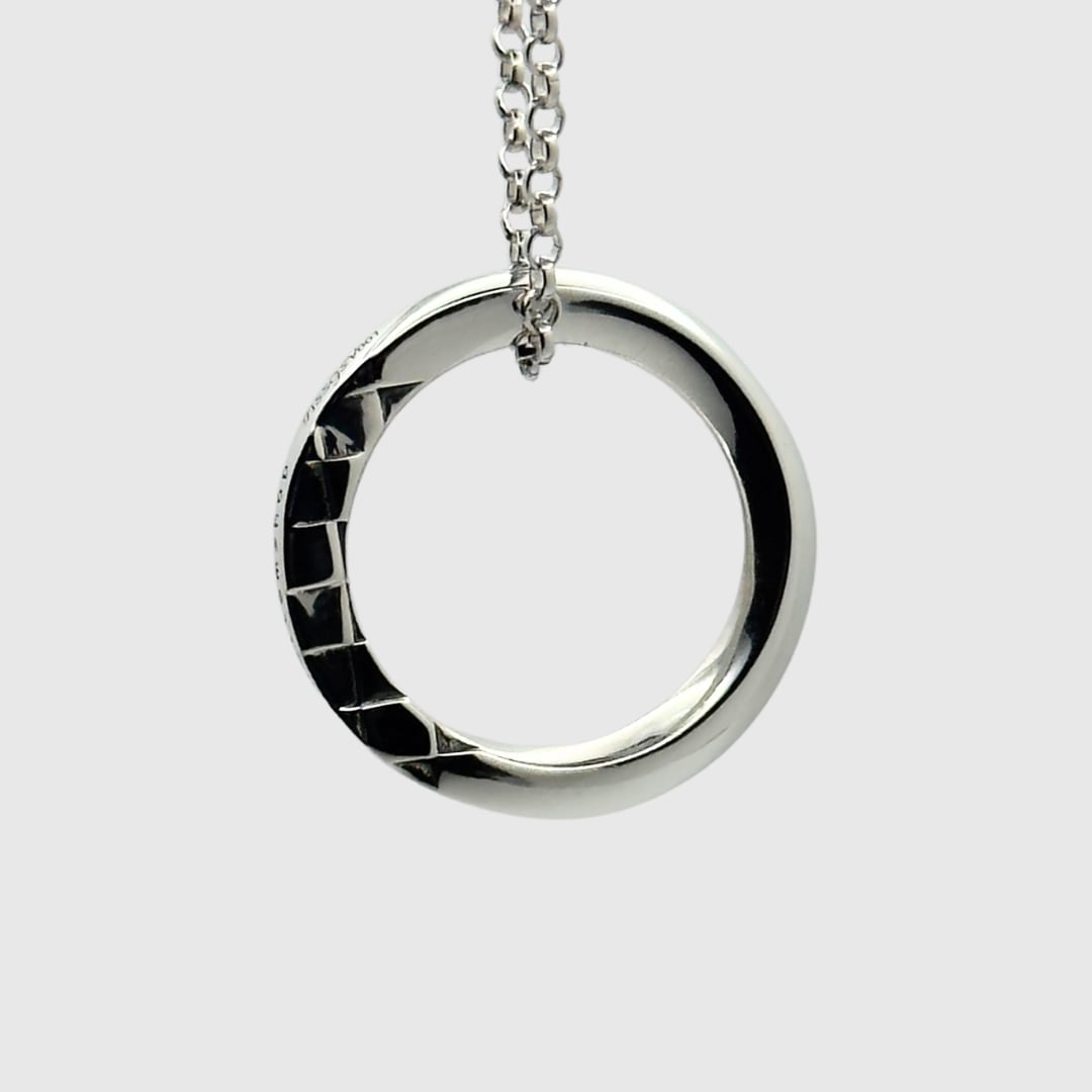 トップのリングは、無限の可能性を示すインフィニティシェイプ。異世界転送を思わせるグリッドとロゴが刻印された、ミニマルな中に唯一無二の個性が光るアイテム。迷いを断ち切る「決意」を象るアイコンとして。