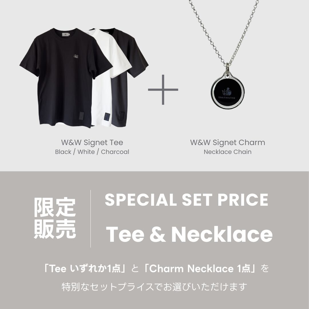 Warrior & Wizardの紋章が印された「 W&W Signet Tee」「W&W Signet Charm Sのネックレス版」を特別なプライスでお選びいただけます。